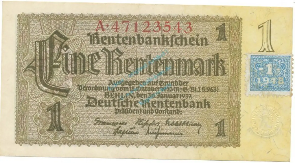 Banknote , 1 Mark Schein -Kupon- unc-kfr. SBZ-1b, Ros.330, P.1, DDR 1948 Alliierte Besatzung
