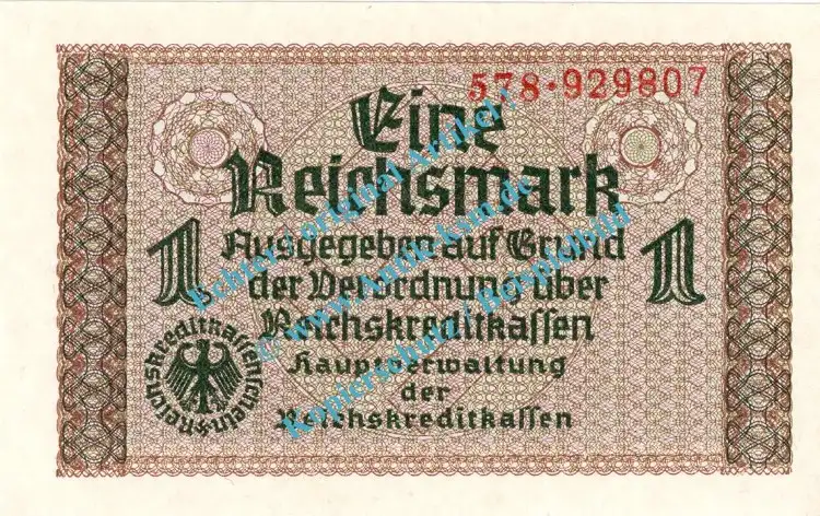 Gutschein / Banknote über Eine Reichsmark o.D. Reichskreditkasse 1939 , 2. WeltkriegGrabowski / Rosenberg / Pick : ZWK.2.b / 551 / R.136