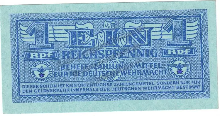 Gutschein / Banknote über Einen Reichspfennig von 1942-1944 , deutsche Wehrmacht / Drittes ReichGrabowski / Rosenberg / Pick : DWM-2.a / 501 / M.32