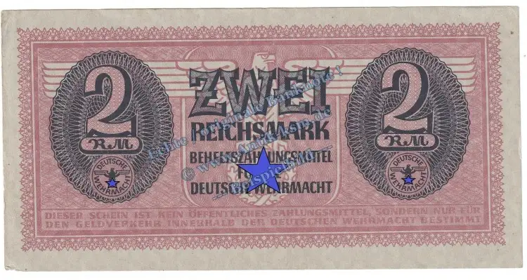 Gutschein / Banknote über Zwei Reichsmark von 1942-1944 , deutsche Wehrmacht / Drittes ReichGrabowski / Rosenberg / Pick : DWM-7 / 506 / M.37