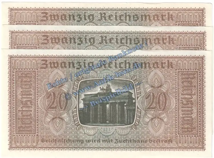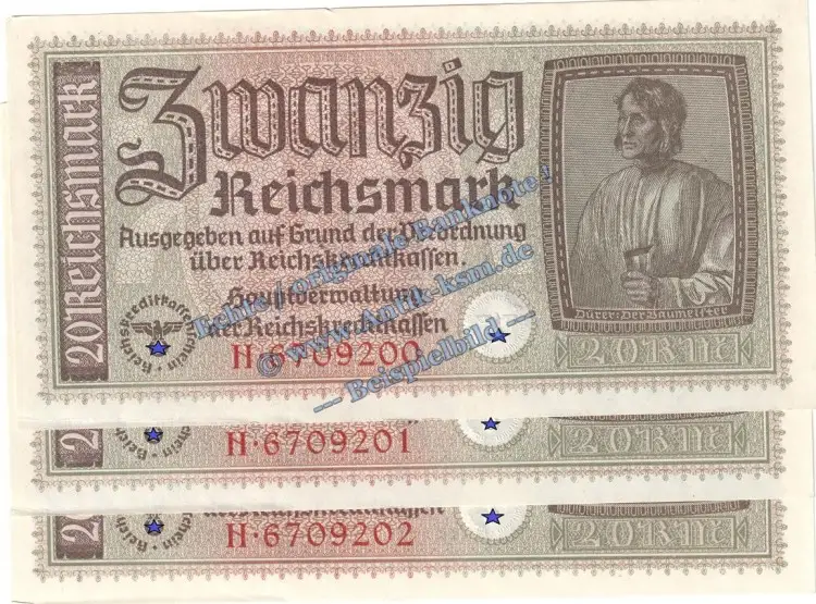 Gutscheine / Banknoten über 3 x 20 Reichsmark ohne Datum , drittes Reich - zweiter Weltkrieg - ReichskreditkassenGrabowski / Rosenberg / Pick : ZWK-5.a / 554 / 139