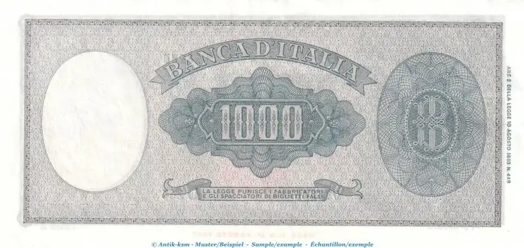 Banknote Italien / Italia , 1.000 Liere Schein von 1949Land : Italien  ,  Katalog World Banknotes  : 88.b