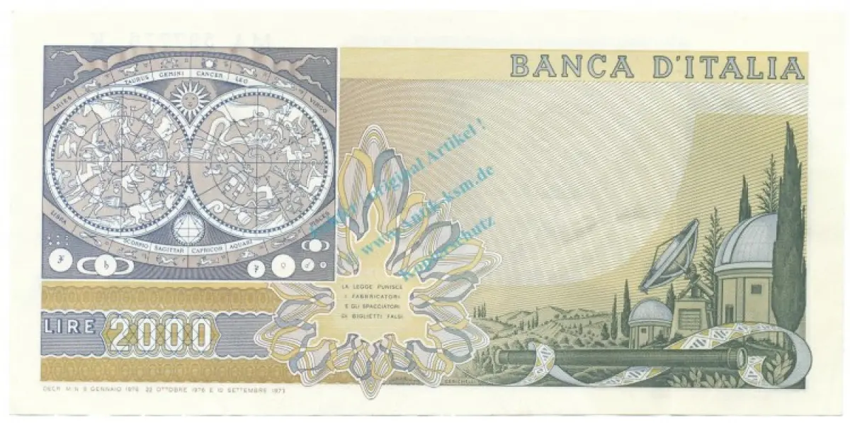 Banknote Italien , 2.000 Lire Schein L-gbr. 1973-76, WPM.103 -Galileo- 0337
