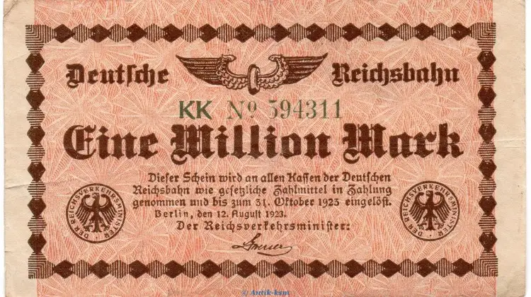 Banknote über Eine Million Mark von 1923 , Inflation , Deutsche ReichsbahnGrabowski / Pick  : RVM-1.b / S.1011