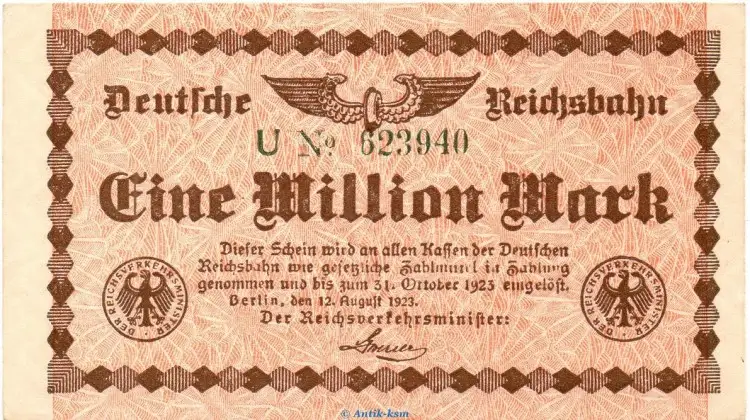 Banknote über Eine Million Mark von 1923 , Inflation , Deutsche ReichsbahnGrabowski / Pick  : RVM-1.a / S.1011