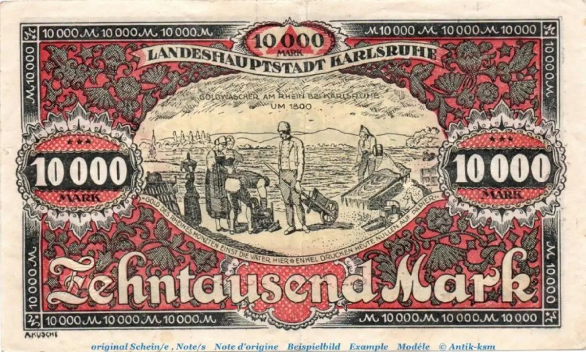 Notgeld über Zehntausend Mark , Stadt Karlsruhe , GrossnotgeldBundesland : Baden  ,  Müller : 2250.4