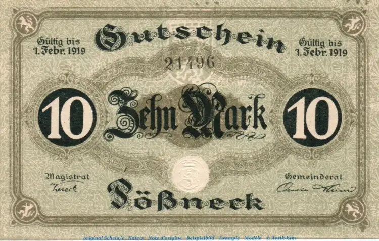 Notgeld über Zehn Mark , Stadt Pössneck , GrossnotgeldBundesland : Sachsen Meiningen  ,  Geiger : 420.02