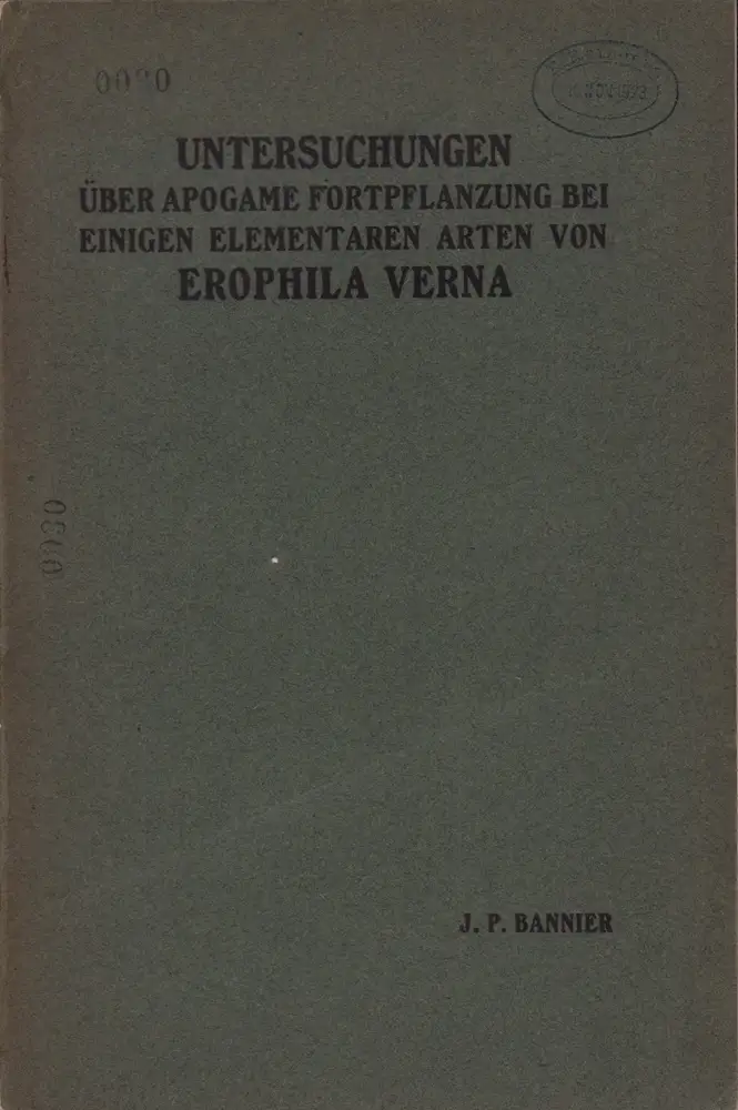 Bannier, Jan Paul: Untersuchungen über apogame Fortpflanzung bei einigen elementaren Arten von Erophila verna. Proefschrift ter verkrijging van den graad van Doctor in de wis- en natuurkunde aan de Rijksuniversiteit te Utrecht.