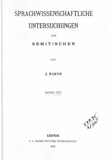 Barth, Jakob: Sprachwissenschaftliche Untersuchungen zum Semitischen. Erster Teil [mehr nicht erschienen?].