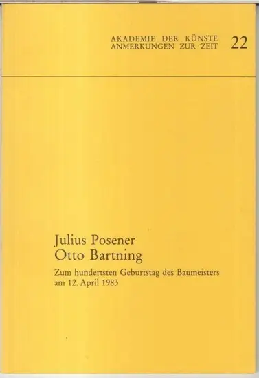 Bartning, Otto. - Julius Posener: Otto Bartning. Zum hundertsten Geburtstag des Baumeisters am 12. April 1983 ( = Anmerkungen zur Zeit, 22 ).
