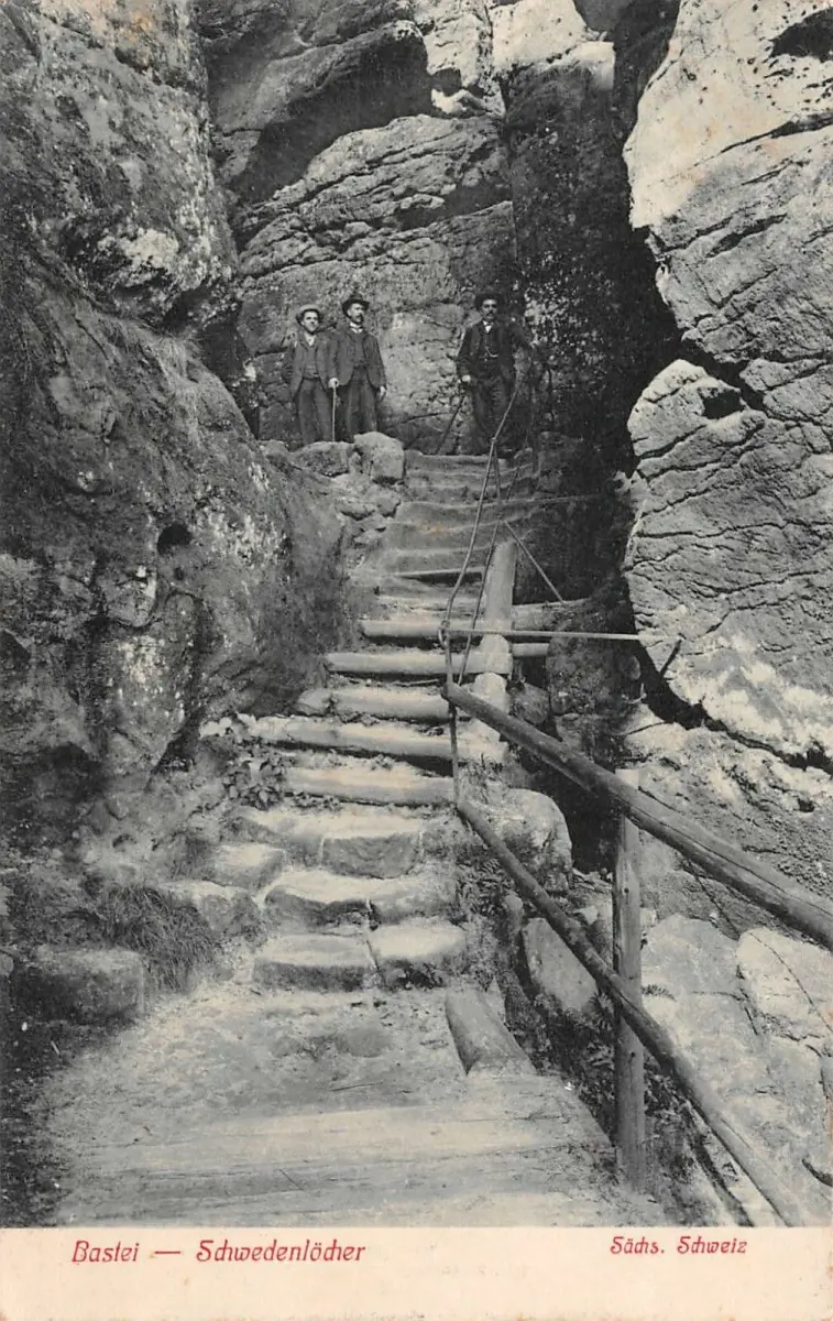 Bastei Schwedenlöcher Sächs. Schweiz Postkarte AK 1909