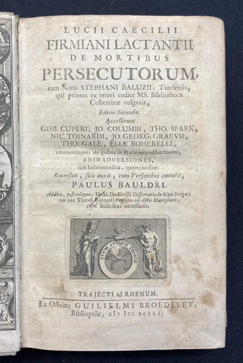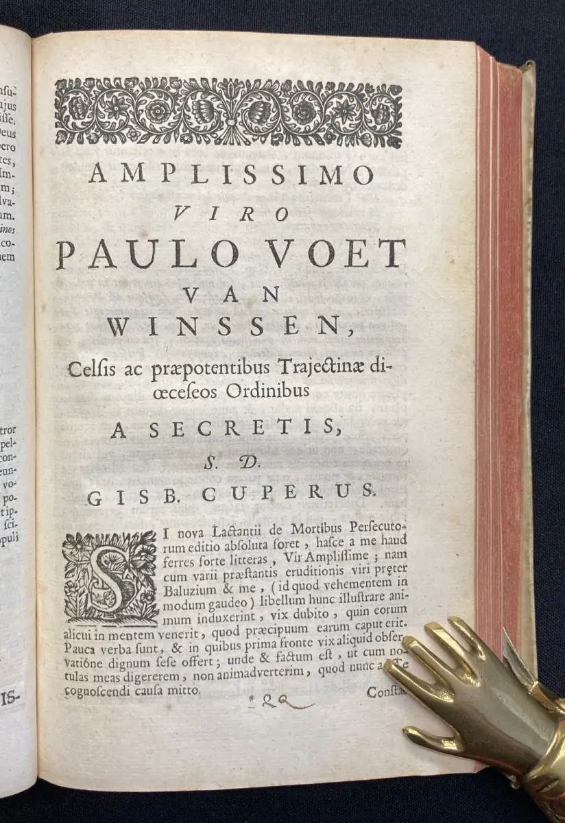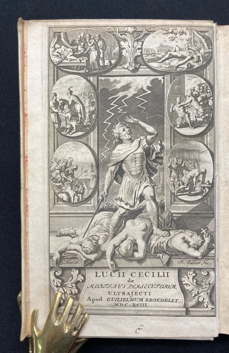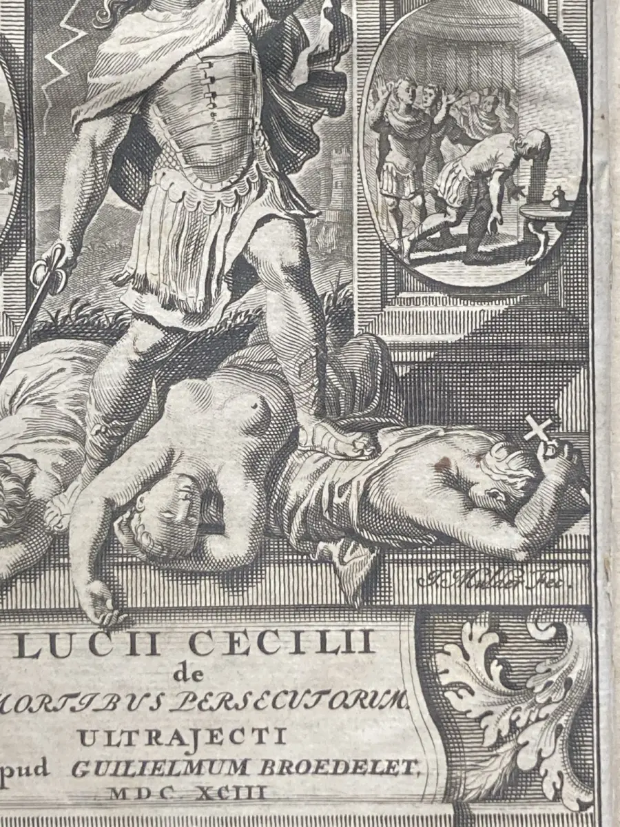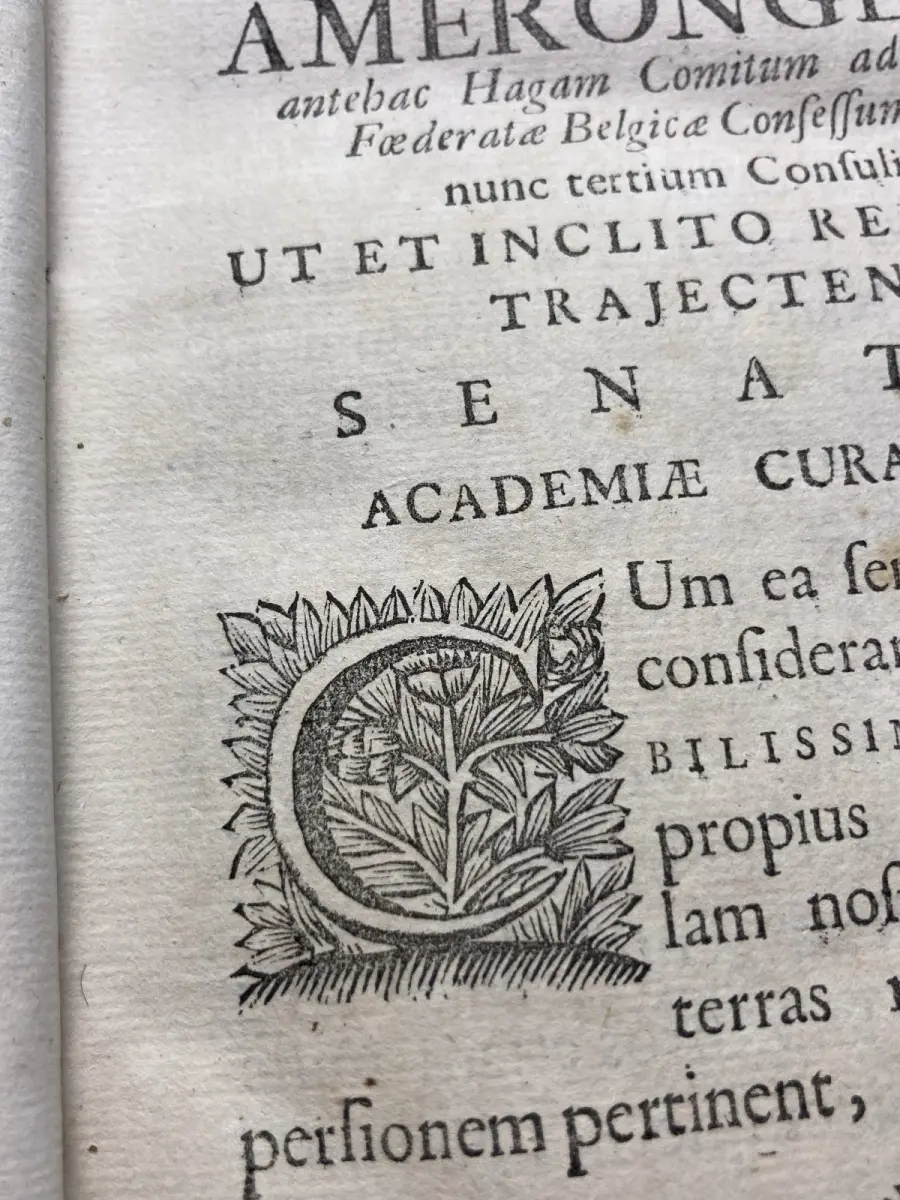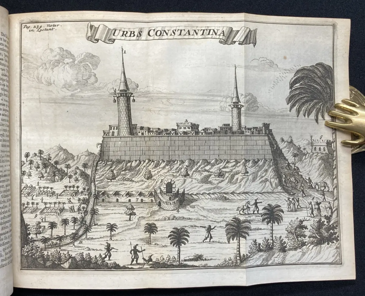 mit mehreren Holzschnittinitialen sowie Abschlussvigneten, sowie einem Frontispiz und 2 gefalt. Stichen und 1 Plan. 15 nn. Bll., 464 S., 33 nn. Bll., Ganzpergament mit 1 RS und spanischen Kanten