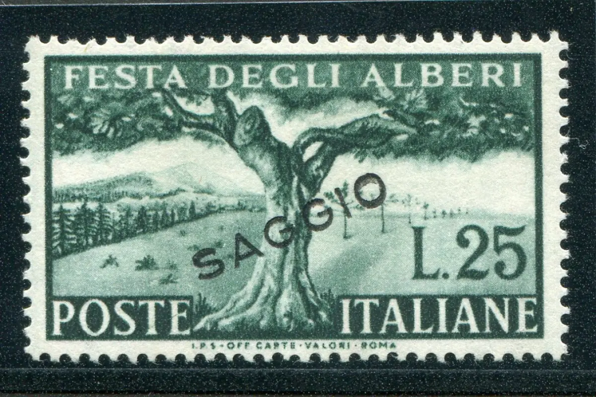 MNH Vollgummi - Bäume Lire 25 Nr. 681 mit Aufdruck WEISHEIT in schwarz - Selten Cod. 533/11