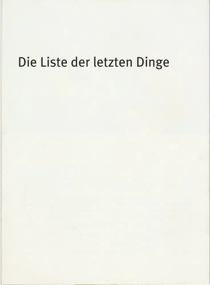 Titel: Programmheft Theresia Walser DIE LISTE DER LETZEN DINGE Uraufführung 7. Juli 2006 Theater im Haus der Kunst Spielzeit 2005 / 06 Heft 81