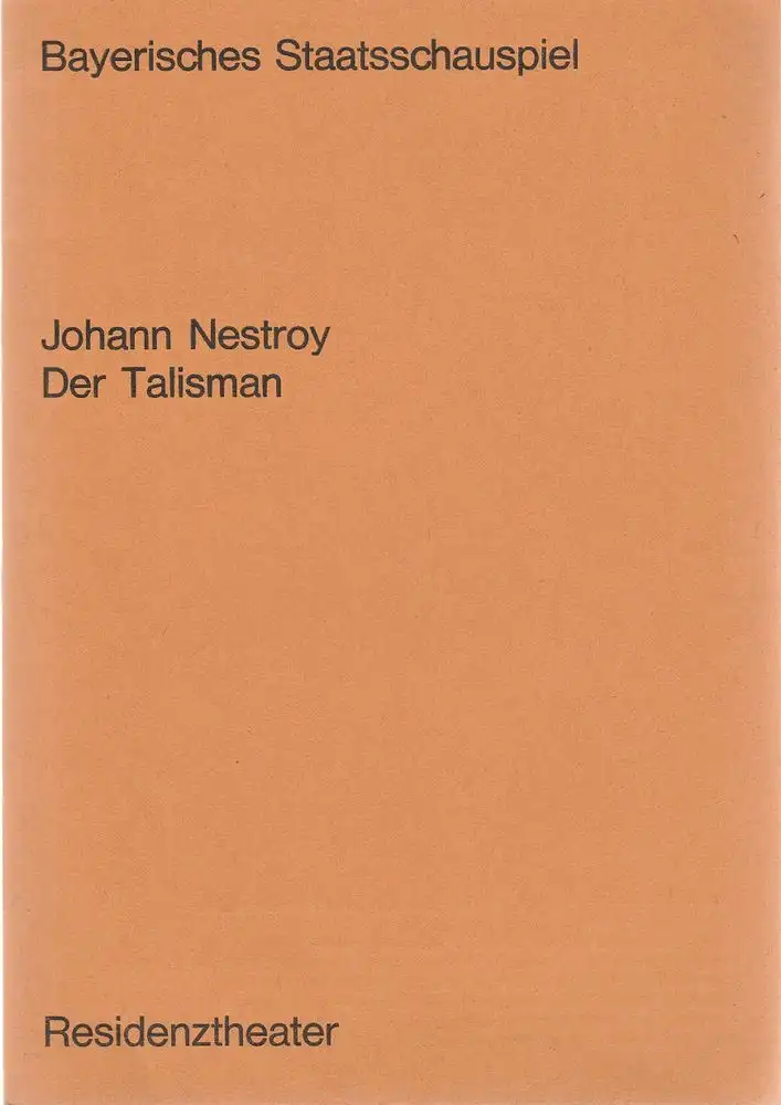 Titel: Programmheft Johann Nestroy DER TALISMANN Premiere 1. Februar 1969 Residenztheater