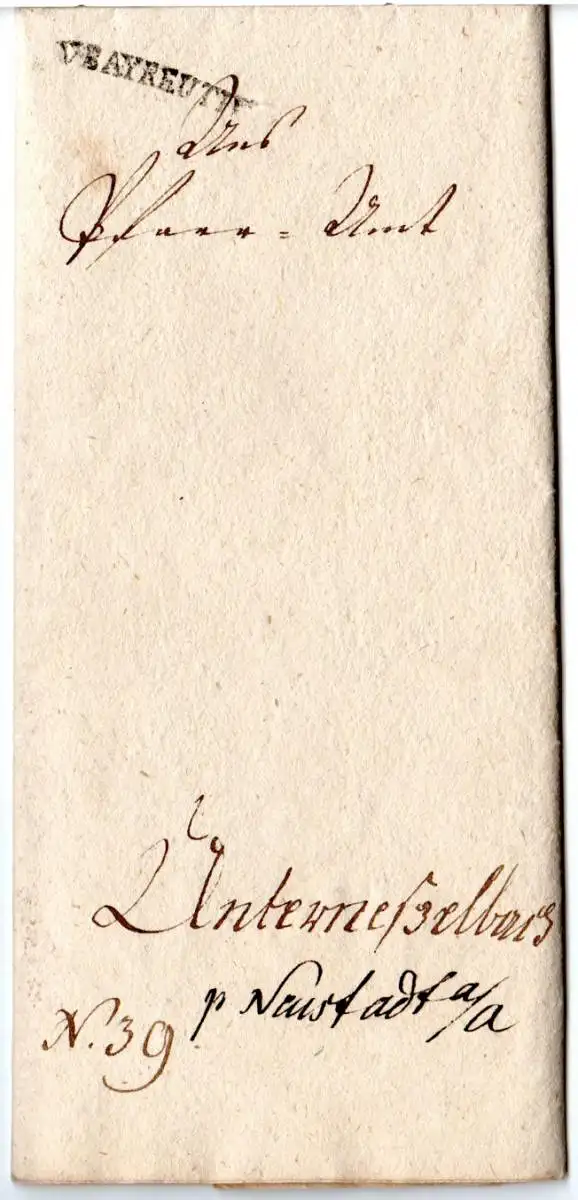 Bayern 1795, L1 V. BAYREUTH auf Brief n. Unternesselbach p. Neustadt a. Aisch