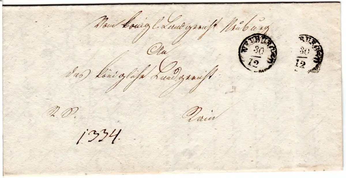Bayern 1840, 2mal Fingerhut Stpl. Neuburg a/D. auf Brief n. Rain.