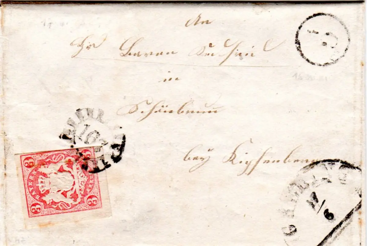 Bayern 1867, G1-Briefträgerstpl. auf Brief v Weinsfeld m. 3 Kr u. MR 167 Greding