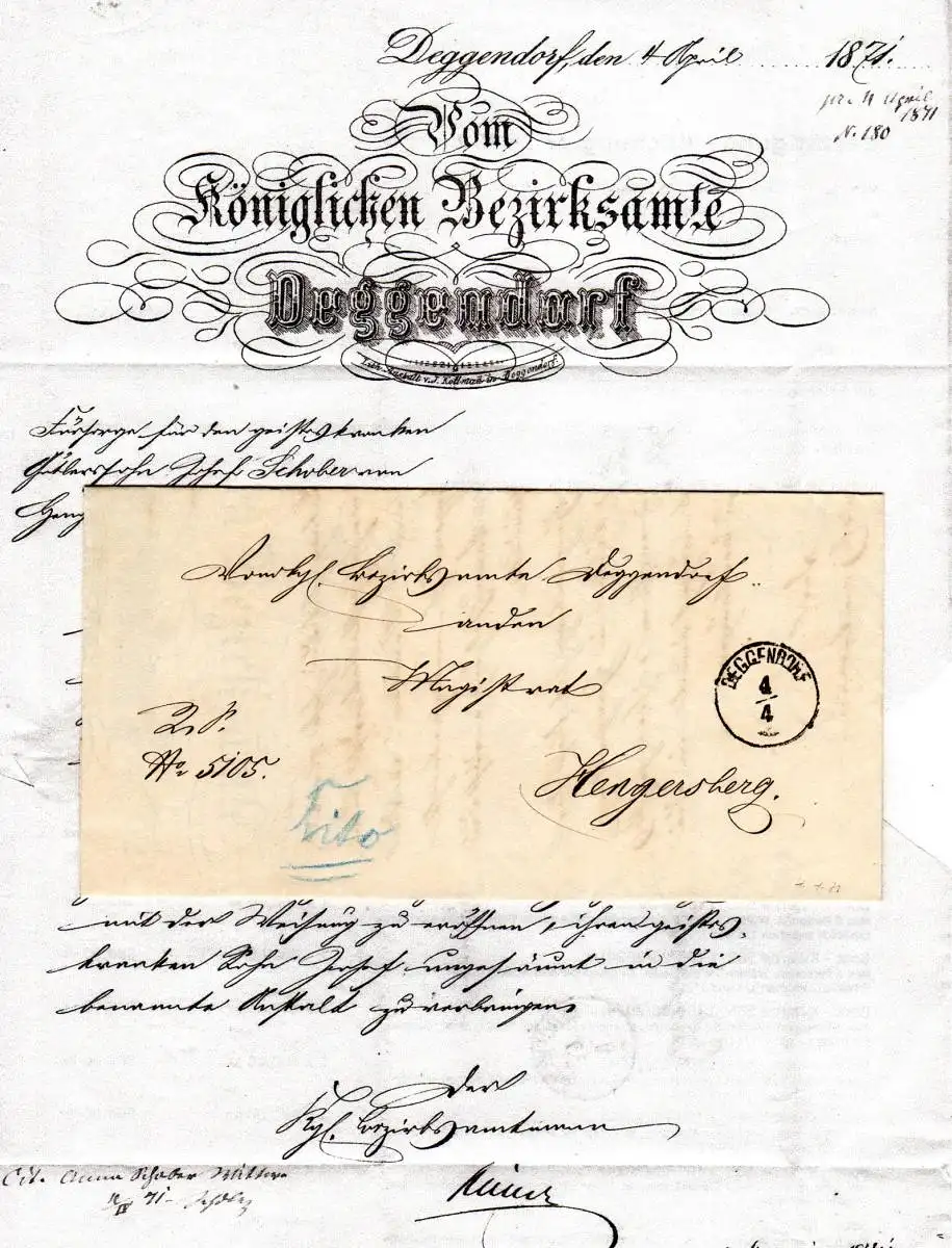 Bayern 1871, Zier-K1 DEGGENDORF auf Brief n. Hengersberg m. Cito-Vermerk