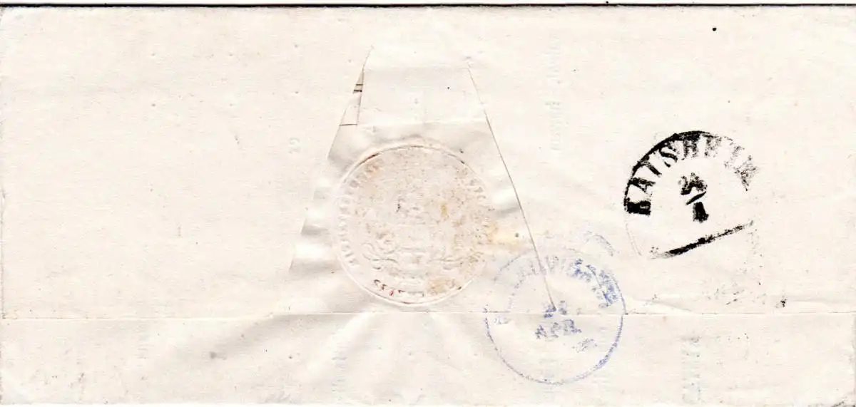 Faltbrief m. papiergedecktem Prägesiegel u. kpl. Vordruckinhalt nach Mündling Post Kaisheim. Rückseitge Durchgangsstpl. HKS Kaisheim u. K1 Donauwörth in blau.