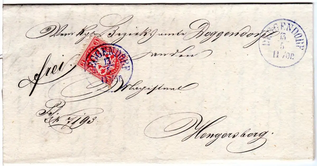 Bayern 1873, 3 Kr. auf Brief m. blauem K1 Deggendorf n. Hengersberg