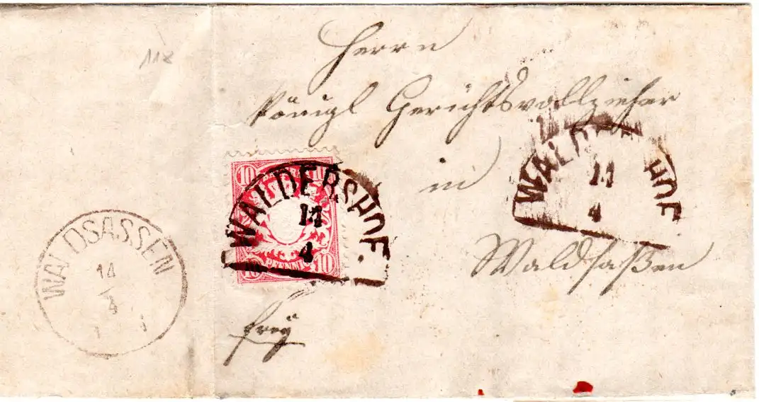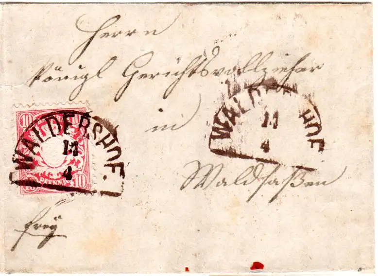 Bayern 1879, HKS WALDERSHOF klar auf kl. Brief m. 10 Pf. n. Waldsassen