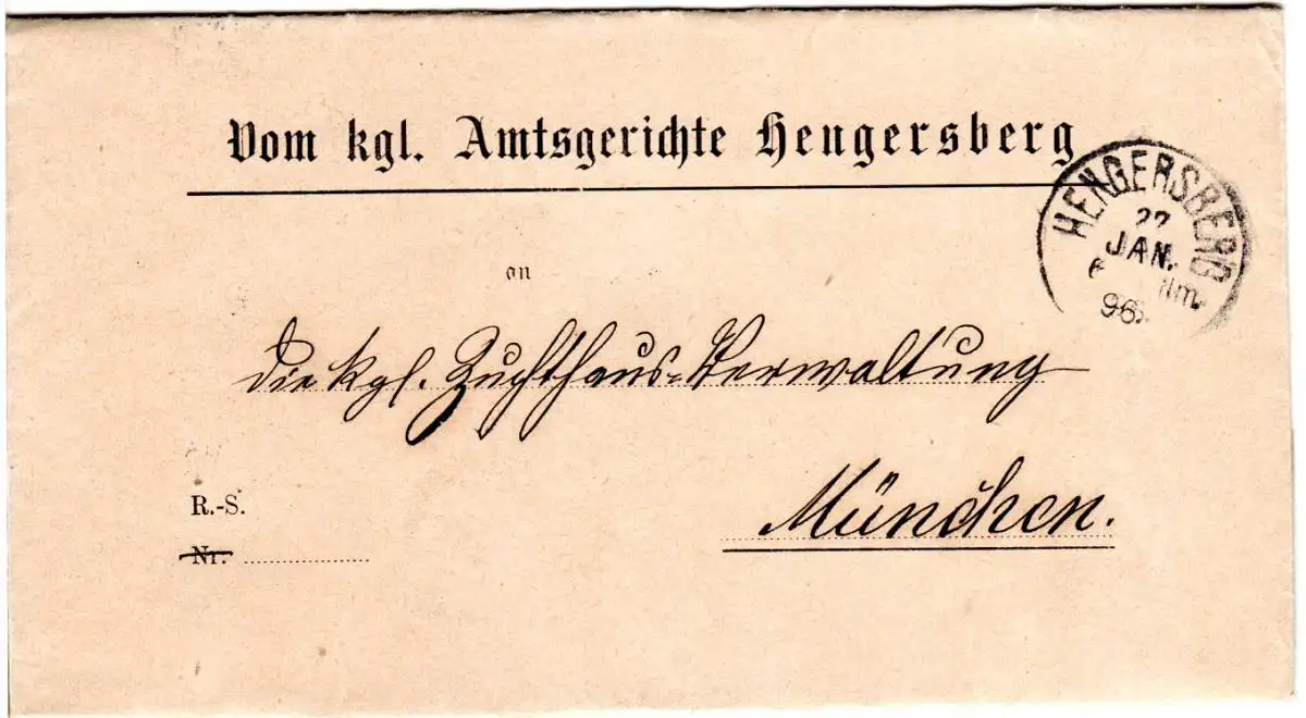Bayern 1896, K1 Hengersberg auf Gerichts Brief n. München