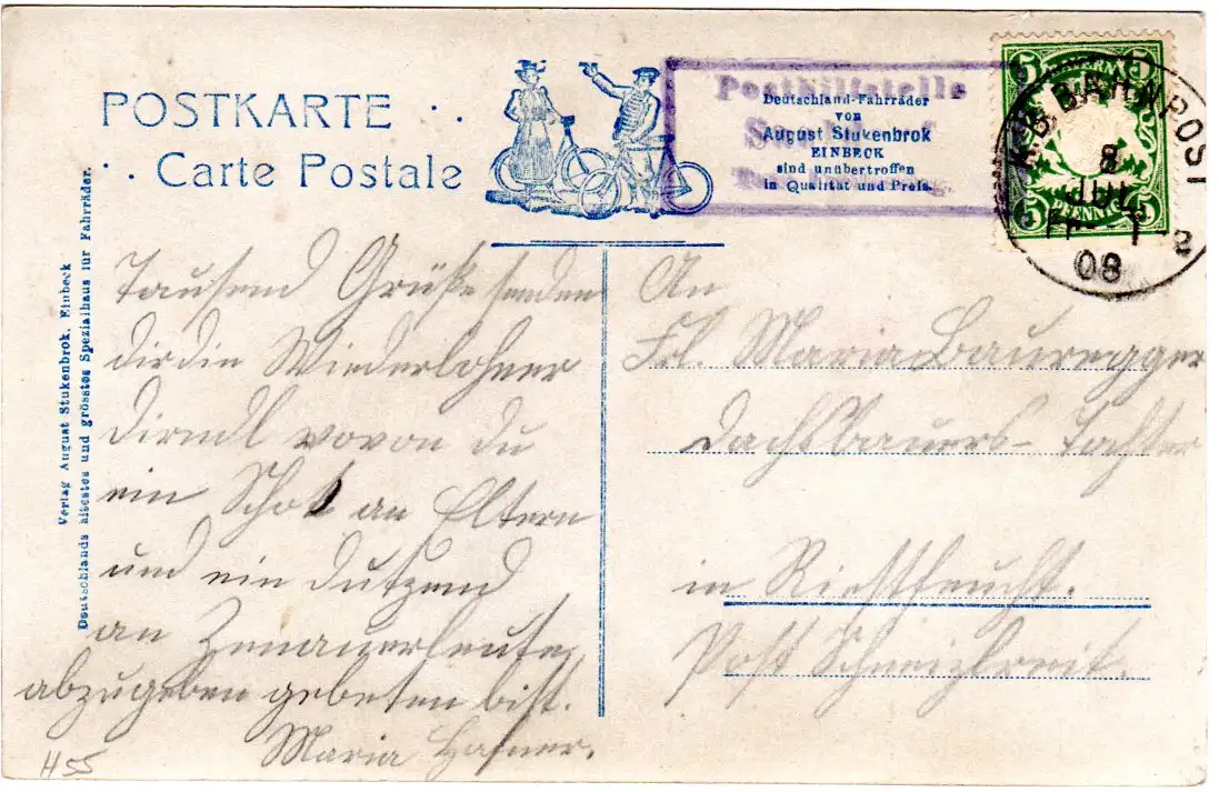 PHST.-R3 auf Karte m. 5 Pf. und K1 K.B. Bahnpost Fr - T 2 (Freilassing-Teisendorf).