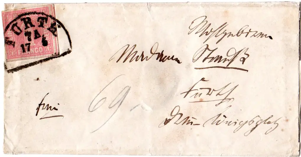 Bayern 3 I, voll-/breitrandige 1 Kr. auf Orts Brief m. klarem HKS Fürth