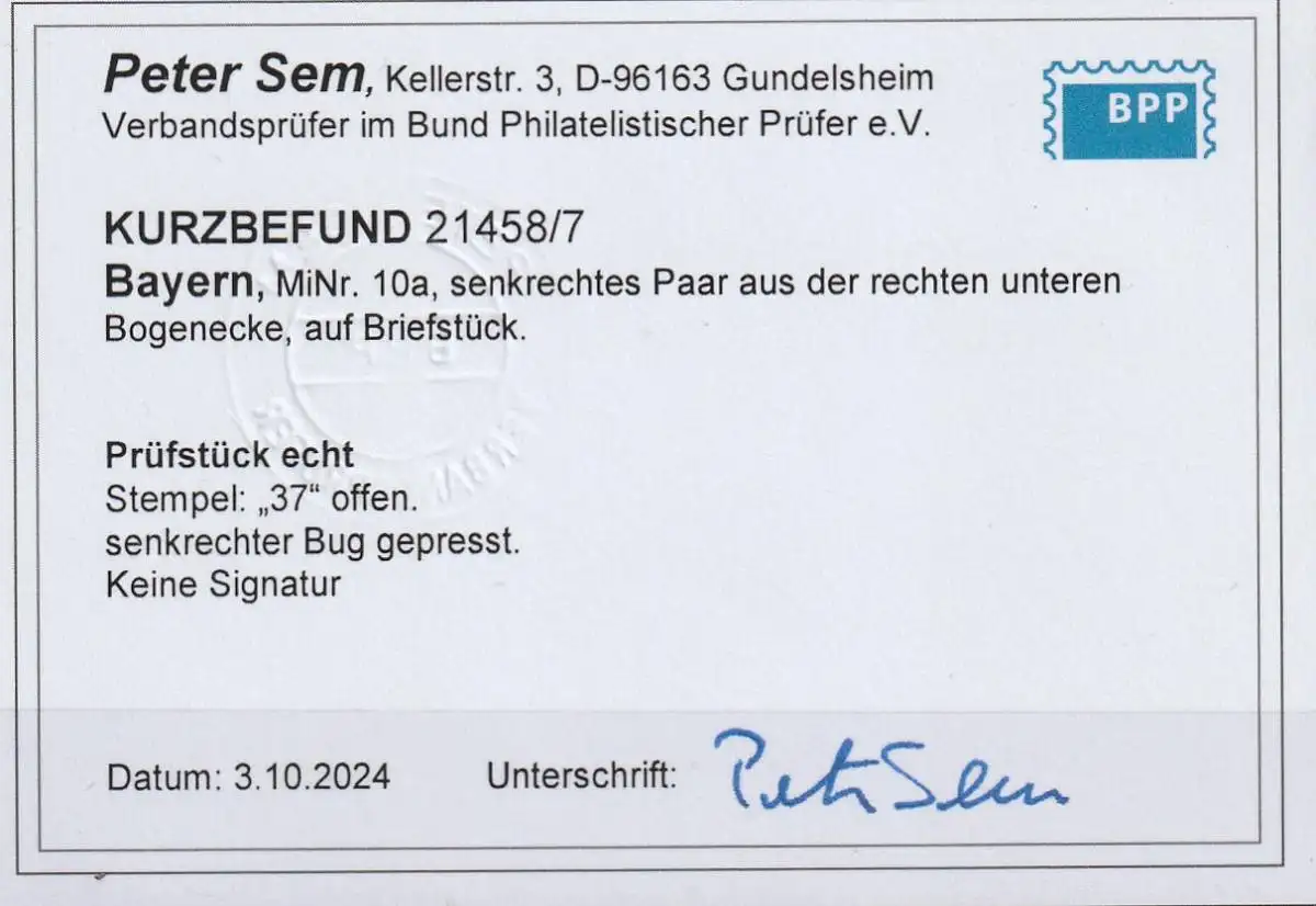 Bayern Nr. 10a im Paar aus der Bogenecke; Spl. 37, Befund Sem