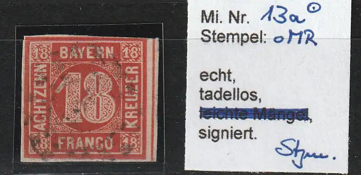 Bayern Nr. 13a, bestgeprüft Stegmüller BPP