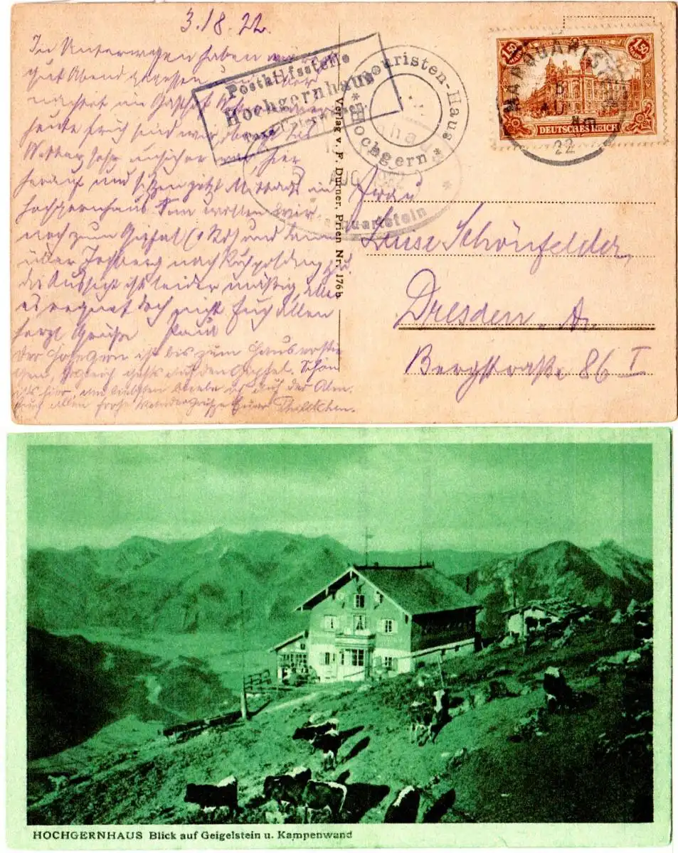 Bayern Posthilfstelle Hochgernhaus Taxe Unterwössen auf AK m. DR 1,50 Mk.