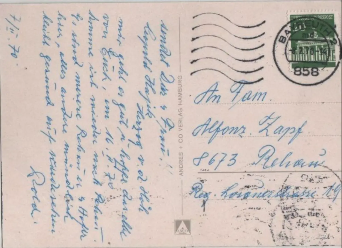 Postleitzahl:95445 (neu) / W 8580 (alt)