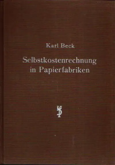 Selbstkostenrechnung in Papierfabriken; Karl Beck; Papier; Papierindustrie; Wirtschaft, Papierindustrie; Wirtschaft; Rechnungswesen; Selbstkostenrechnung; Buchhaltung