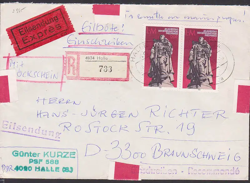 Befreiung vom Faschismus 1M in MEF (2945) auf R-Eil-Rsdg aus Halle n. Braunschweig