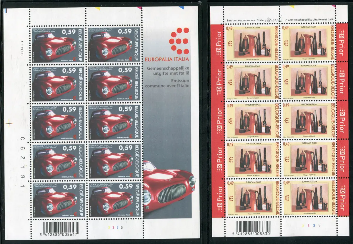 Belgien - Europa Gemeinschaftsausgabe mit Italien - Vollständiger Vollgummibogen - Belgien - die Serie von zwei Werten, die von Belgien in vollständigen Blättern ausgegeben werden - Gemeinsame Ausgabe mit Italien - GRATIS ZWEI Einzelserien - Ungewöhnlich - Code 1164 / OUTLET
