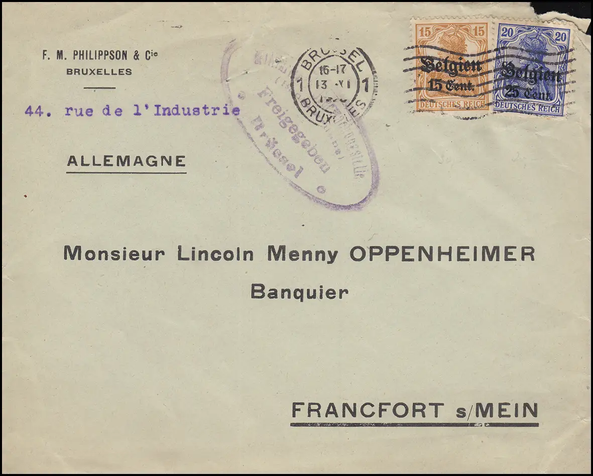 Belgique censure Bruxelles Lettre avec impression Germania MiF BRUXELLES 13.11.