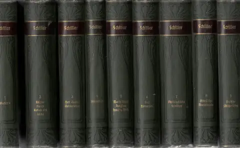 das Erscheinungsjahr ist geschätzt, die Seiten sind gebräunt, die Einbandkanten sind bestoßen, aus dem Inhalt: 1. Band: Gedichte - 2. Band: Die Räuber ; Die Verschwörung des Fiesco zu Genua ; Kabale und Liebe - 3. Band: Don Carlos ; Der Verbrecher aus verlorener Ehre ; Der Geisterseher - 4. Band: Wallenstein - 5. Band: Maria Stuar ; Die Jungfrau von Orleans ; Die Braut von Messina - 6. Band: Wilhelm Tell ; Demetrius - 7. Band: Philosophische Schriften - 8. Band: Was heißt und zu welchem Ende studiert man Universalgeschichte? ; Geschichte des Abfalls der vereinigten Niederlande von der spanischen Regierung - 9. Band: Geschichte des Dreißigjährigen Kriegs Beschreibung vom Antiquariat Ardelt 3d2b Antiquariat Ardelt