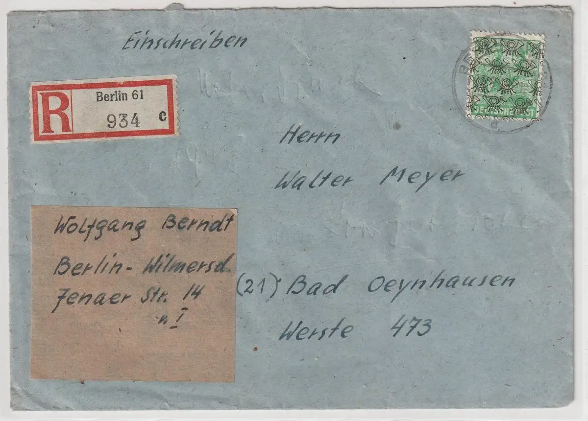 Berlin: 84 Pfg. Posthorn Netz auf R-Fern-Brief in WBerlin verwendet, gepr.