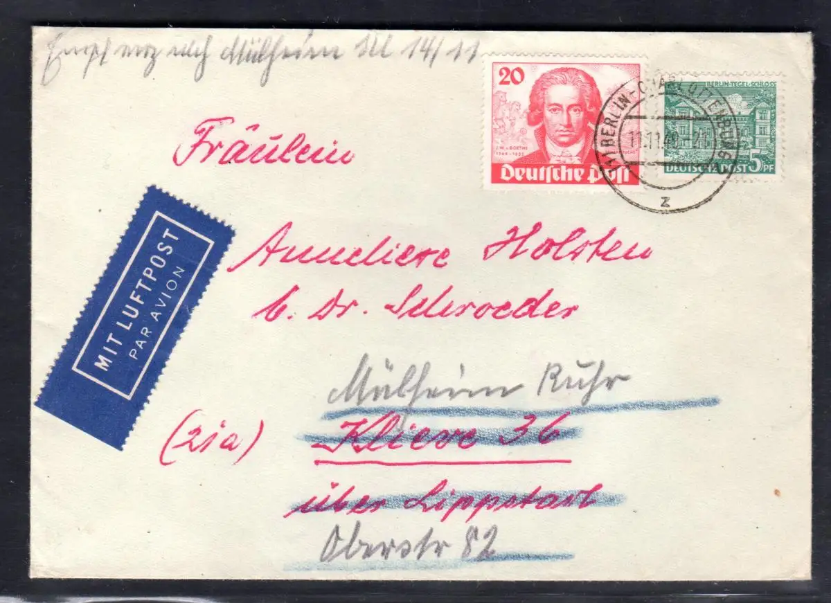 Berlin Goethe 20 Pfg.auf Luftpostbrief