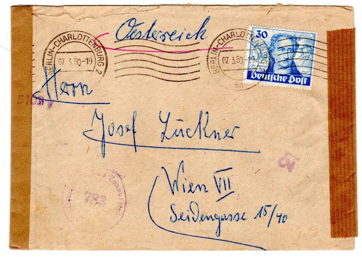 Berlin Goethe: Auslands-Brief mit EF 30 Pfg. Goethe, zensiert
