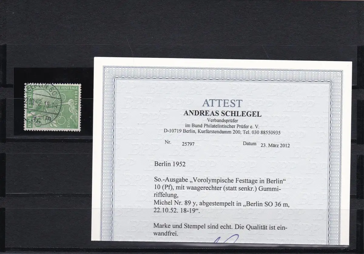 Berlin: MiNr. 89y, cacheté 1952, BPP Attest
