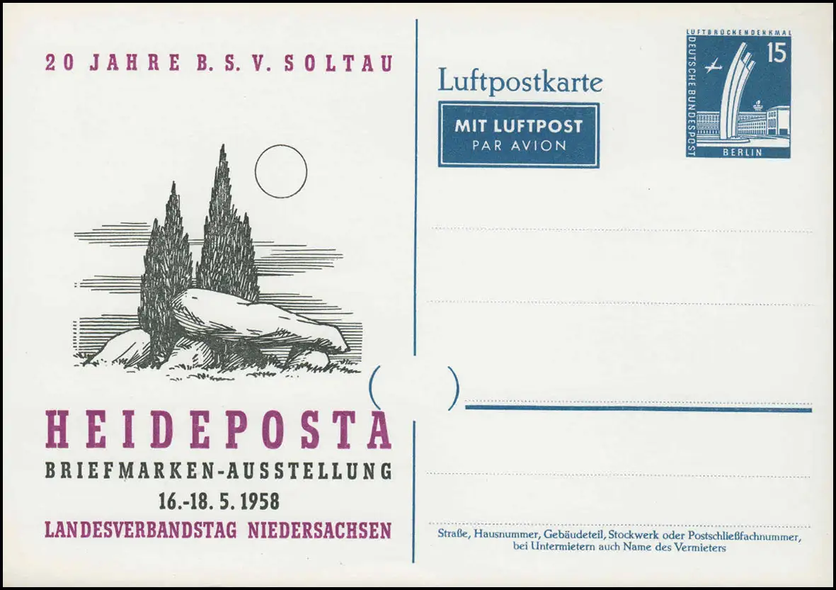 Berlin PP 19/6 BSV Soltau HEIDEPOSTA 1958, inutilisé