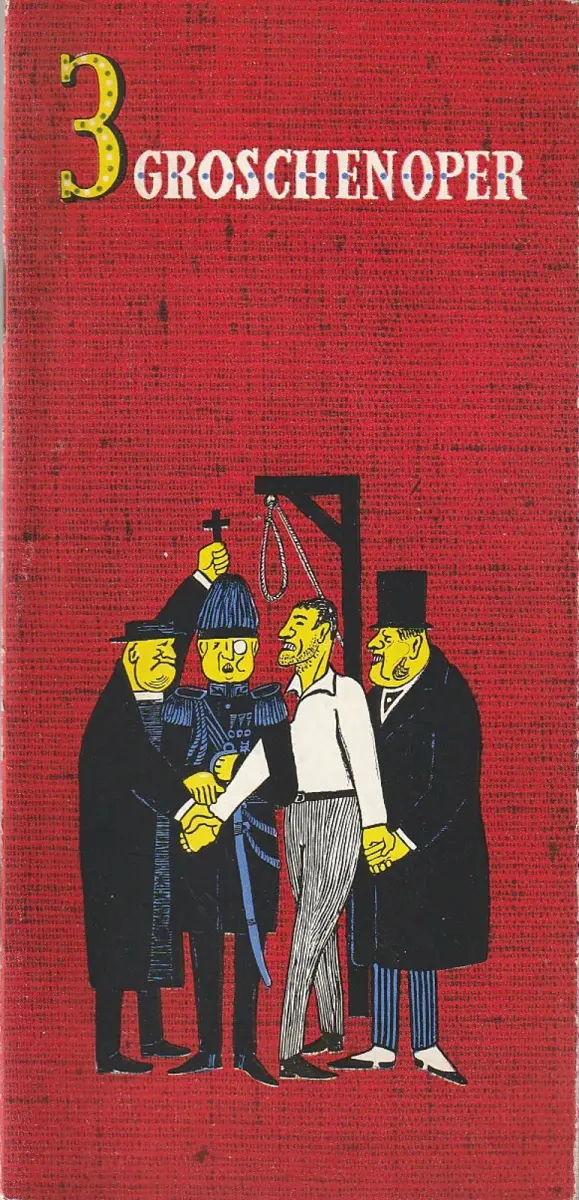 Text: Bertolt Brecht. Musik: Kurt Weill. Regie: Erich Engel. Assistenz-Regie: Wolfgang Pintzka. Musikalische Leitung: Hans-Dieter Hosalla. Bühne und Kostüme: Karl von Appen. Mitwirkende: Wolf Kaiser, Peter Kalisch, Carola Braunrock, Christine Gloger / Angelica Domröse, Siegfried Kilian, Annemone Haase / Renate Richter, Günter Ott, Felicitas Ritsch, Agnes Kraus, Petra Kelling, Marlies Wilken, Irene Ullrich, Liane Düsterhöft, u.a. - Theaterprogramm, Opernprogramm, Ballettprogramm, Musicalprogramm, Konzertprogramm, Theatermemorabilia, Programmhefte Sammlung, deutsche Theatergeschichte.