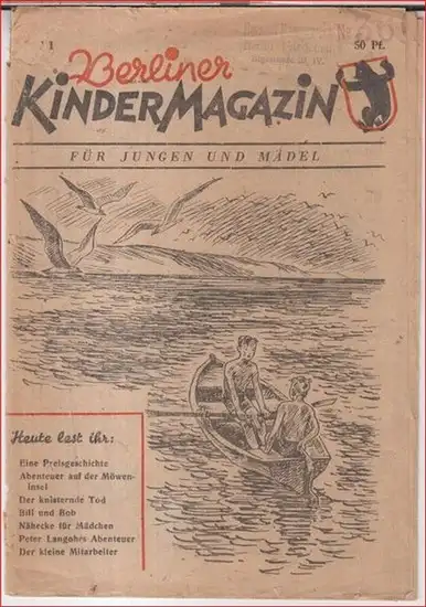 Titel: Berliner Kinder-Magazin für Jungen und Mädel. - aus dem Inhalt: Abenteuer auf der Möweninsel / Der knisternde Tod / Bill und Bob / Nähecke für Mädchen und vieles mehr.
