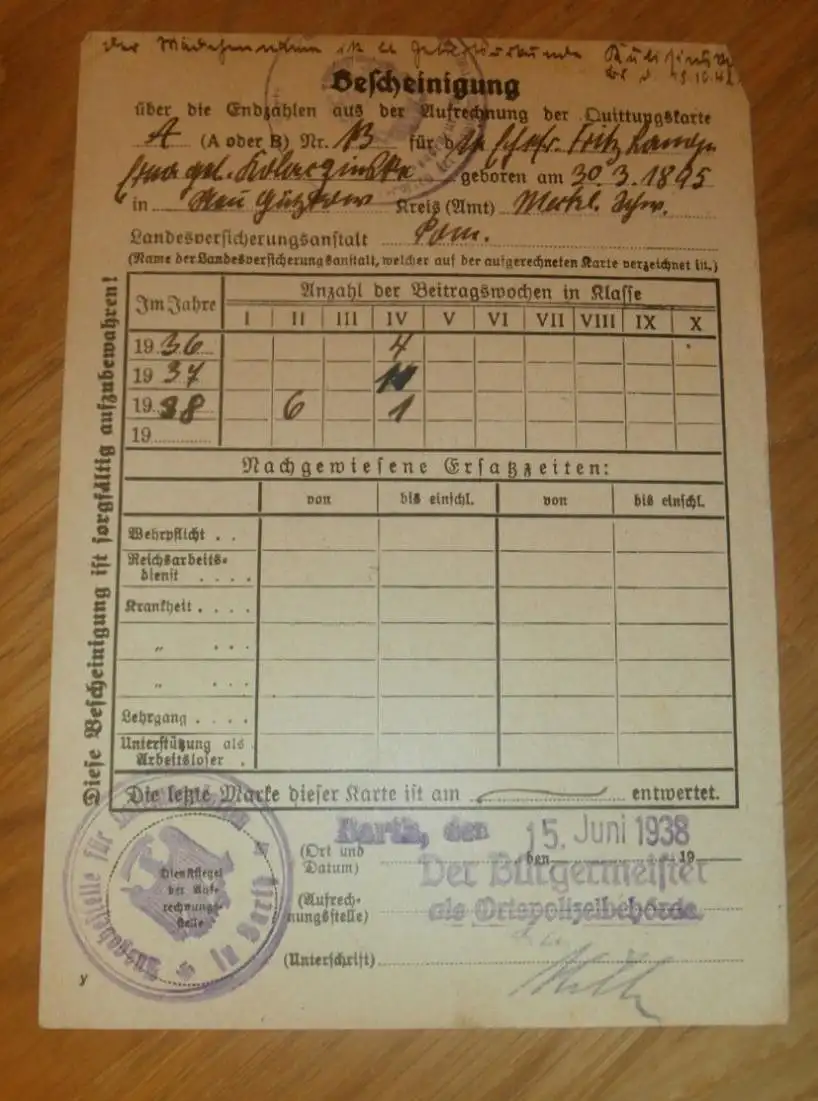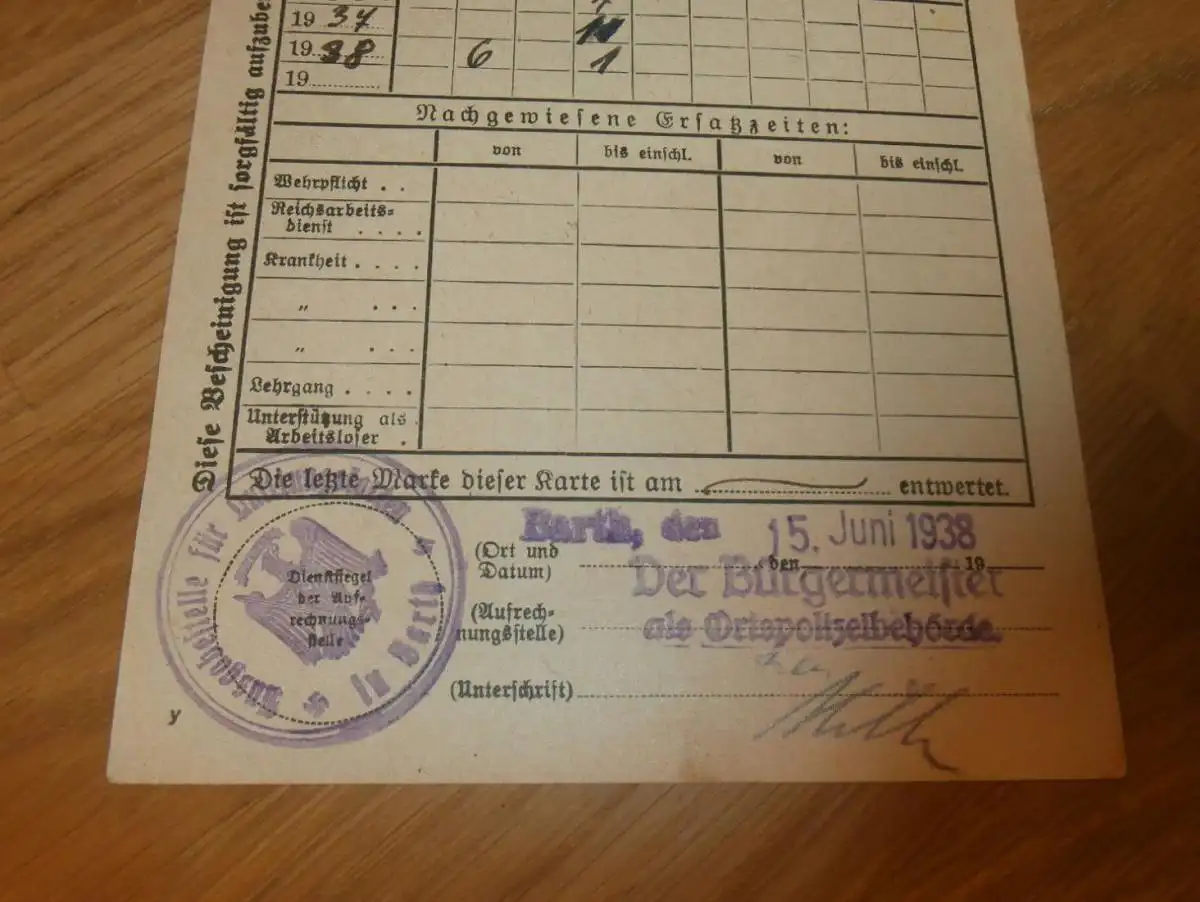 Bescheinigung - Bürgermeister in Barth , 1938 , Polizei , Mecklenburg !!