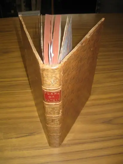 Taille 8 ° (26,3: 19,5 cm). Bracelet tout en cuir d'origine sur cinq frettes avec titre en or estampé et ornements en relief richement dorés. Bordure dorée, section rouge à trois côtés. Petits défauts du cuir aux coins et au devant, au dos un peu plus profond (par exemple, alimentation du ver - voir photo). 2 w. Bl., VI, (2), 160 pages avec frontispice en cuivre / 43 (+1) pages avec un tout. Cuivre après S.8 et une table pliée après S. 22/160 pages avec frontispice en cuivre, trois tables pliées après S. 106 et un tout. Cuivre selon p.109. Dans la première partie de la page 138, trois plans du château de Moscou gravés. Dans la première partie avec de petites taches de rouille aux pages 107-111. Le cuivre dans la deuxième partie du premier volume connecté ici appartient en réalité au deuxième volume. Tellement complet avec 2 frontispices, 5 cuivres, 66 cuivres gravés dans le texte et les tableaux. Nettoyer à l'intérieur, fermement dans le bloc. Exactement vérifié côte à côte. Vraiment bon, et copie décorative. -- Gr.-8° (26,3 : 19,5 cm). Original-Ganzlederband auf fünf Bünden mit goldgeprägtem Rückentitel und reichhaltig goldgeprägter Rückenverzierung. Kantenvergoldung, Dreiseitenrotschnitt. Kleine Lederdefekte an den Ecken und Vorderdeckel, am hinteren Deckel etwas tiefer (wie Wurmfraß - siehe Foto). 2 w. Bl., VI, (2), 160 Seiten mit Frontispizkupfer / 43 (+1) Seiten mit einem ganzs. Kupfer nach S.8 und einer mehrfach gefalteten Tabelle nach S. 22 / 160 Seiten mit Frontispizkupfer, drei mehrfach gefalteten Tabellen nach S. 106 und einem ganzs. Kupfer nach S.109. Im ersten Teil nach Seite 138 drei gestochene Grundrisse des Moskauer Schlosses. Im ersten Teil mit kleinen Rostflecken auf den Seiten 107-111. Das Kupfer im zweiten Teil des ersten Bandes hier verbunden, gehört eigentlich in den zweiten Band. So komplett mit zusammen 2 Frontispiz, 5 Kupfern, 66 gestochenen Kupfern im Text und den Tabellen. Im Innenbereich sauber, fest im Block. Seite für Seite genau überprüft. Richtig gutes, und dekoratives Exemplar