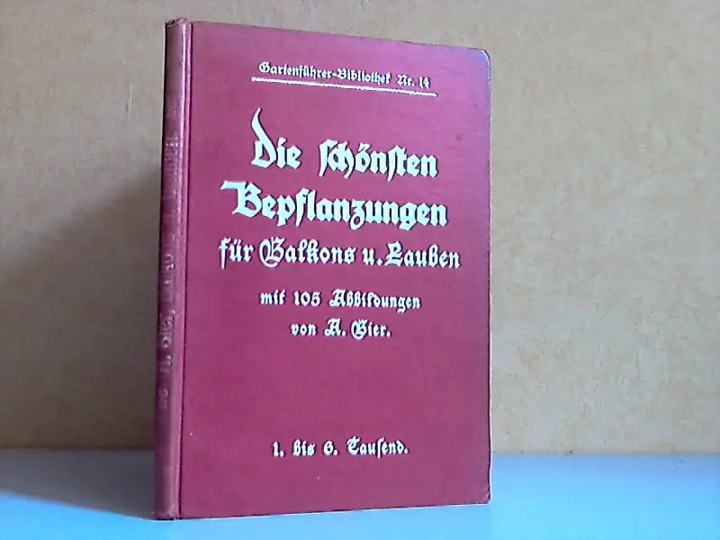das Erscheinungsjahr ist geschätzt, das Buch ist ein Dachbodenfund, gebräunt, fleckig, Rückenkanten und Einbandecken mit Bestoßungen, Rückenschrift abgegriffen, aus dem Inhalt: Balkon- und Fensterschmuck - Lauben und ihre Beflanzung - Sachregister Beschreibung vom Antiquariat Ardelt 3i6b Antiquariat Ardelt