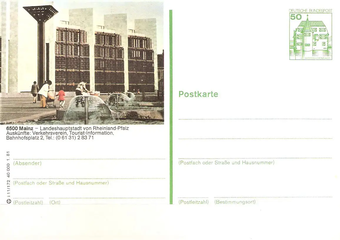 Bildpostkarte 6500 Mainz von 1981 / Rathaus (bpk17)