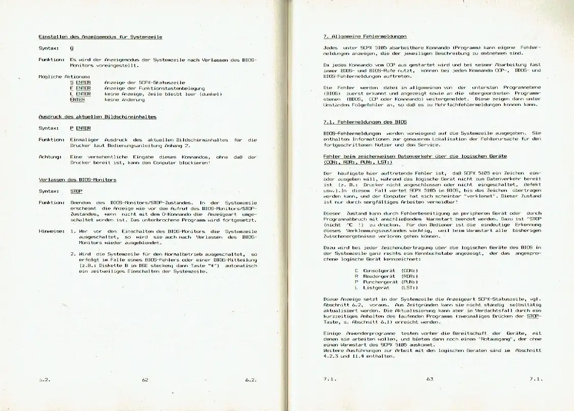sehr guter Zustand, geringe Gebrauchs- und Alterungsspuren: Umschlag und Seiten teils etwas eselsohrig, Ausführliches Inhaltsverzeichnis - Einleitung - Grundwissen zum SCPX 5105 - Disketten und Dateien - Kommandosystem des SCPX 5105 - Systemzeile - STOP-Zustand - Allgemeine Fehlermeldungen - ANHANG A Tastencodes - ANHANG B Zeichensatz im SCPX 5105 - Grundlagen der Programmierung - Beschreibung der BDOS-Funktionen - Ein Beispiel für die Anwendung der BDOS-Funktionen - Beschreibung der BIOS-Funktionen - Anhang C: Reservierte Speicherplätze - Anhang D: BDOS-Funktionen - Anhang E: BIOS-Funktionen - Anhang F: V.24-Treiber im SCPX 5105, kartoniert, ca. 14,5 x 20,5, 76 Seiten